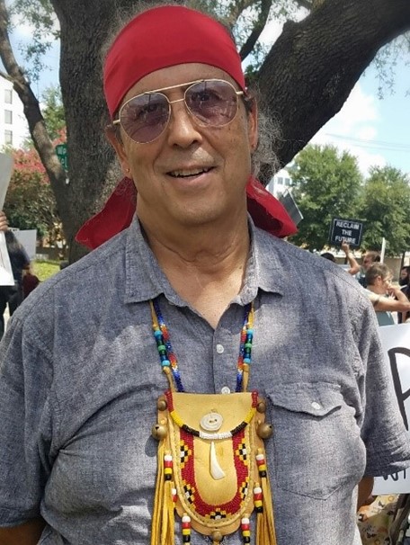 The San Marcos UU Fellowship welcomes Gene Randall to the table. “Uncle Gene” Randall has been a radio host of Indigenous Freedom Radio, and is an elder, a powwow gourd dancer, and a powwow emcee in the Central Texas indigenous community. As a public speaker, he has addressed such issues as missing and murdered indigenous women and girls (MMIWG+), residential school programs, environmentalism, fossil fuel extraction, cultural preservation, and the indigenous perspective on racism and other topical issues. He is a member of the Indigenous Cultures Institute based in San Marcos.